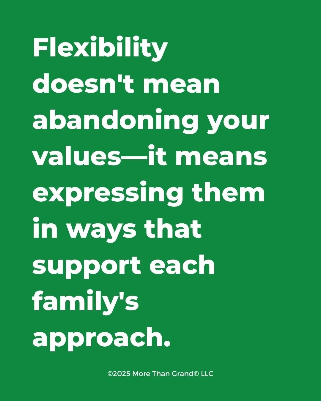 A: Yes. Flexibility shows respect for each family’s values and helps grandchildren understand that different homes can have different expectations.